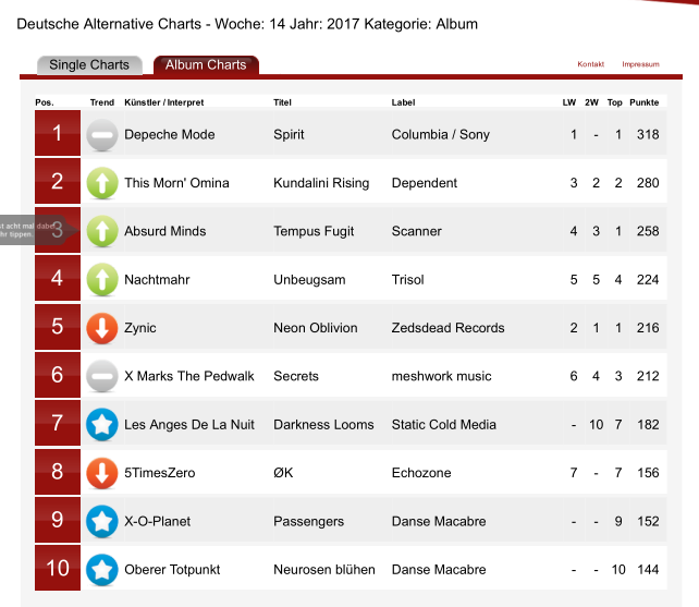So fängt eine Woche doch schön an. X-O-Planet ist auf Platz 9 in die Deutsche Alternative Charts (DAC) eingestiegen.
